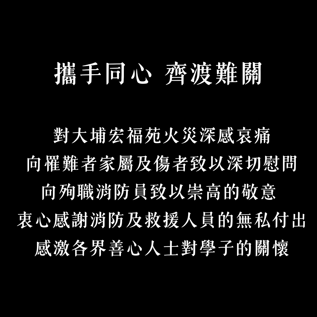 再次感謝各校友的心意,希望大家平安。讓我們也透過禱告繼續為受影響的學生及大埔居民送上祝福。