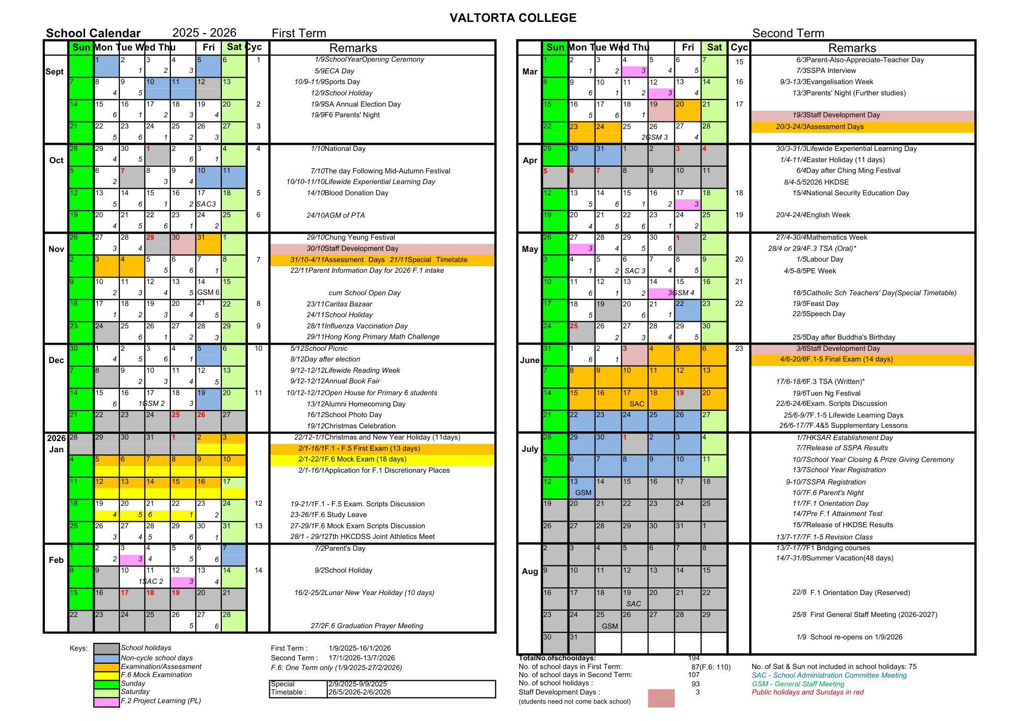 School Calendar 2025-2026