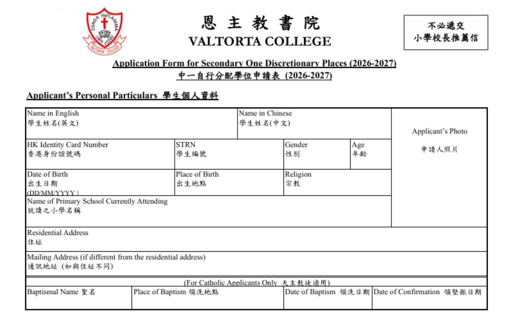 按此下載中一自行分配學位申請表格 (2026-2027)