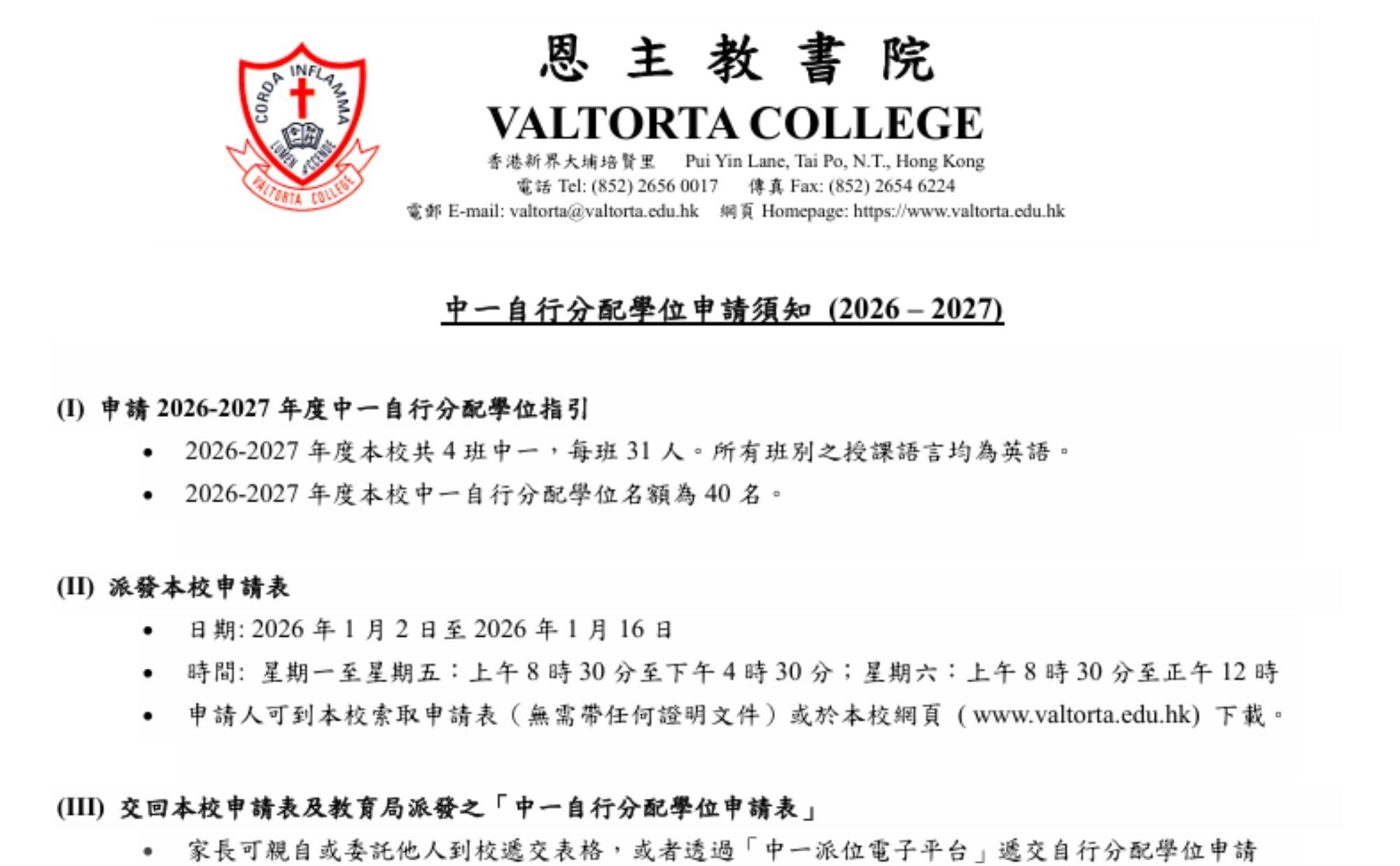 按此下載中一自行分配學位申請須知 (2026-2027)